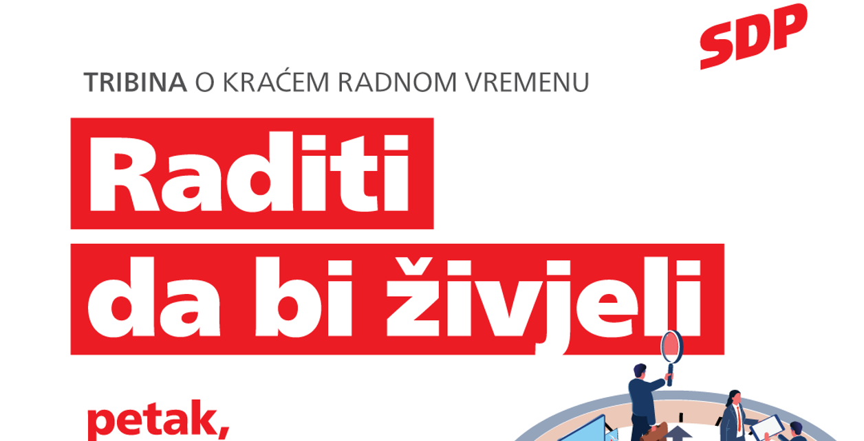 Prva u nizu tribina o kraćem radnom vremenu pod nazivom „Raditi da bi živjeli" održat će se u petak, 10. travnja 2026. godine u 18 sati u prostorijama Gradske organizacije SDP-a Velika Gorica (Cvjetno naselje 11).