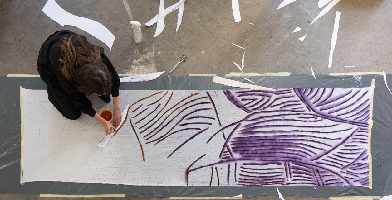 Novi ciklus radova naziva Boginja Ane Ratković Sobota dosljedno se nadovezuje na njezina recentna istraživanja materijala, prirode i simboličkih sustava vidljiva u ciklusima Trag boje i Sunčev vrt. Dok je u Tragu boje umjetnica reducirala pejzaž na njegove energetske i simboličke karakteristike, koristeći pigmente biljnog podrijetla kao izravne tragove prirode, a u Sunčevom vrtu proširila taj interes prema cikličnosti vremena, biljnim vrstama i solarnim simbolima kroz batik tehniku, u najnovijem ciklusu kojim se predstavlja u Galeriji Galženica fokus se dodatno pomiče od pejzaža kao vanjskog fenomena prema unutarnjim, arhetipskim strukturama čovjeka i njegovog odnosa s prirodom.
