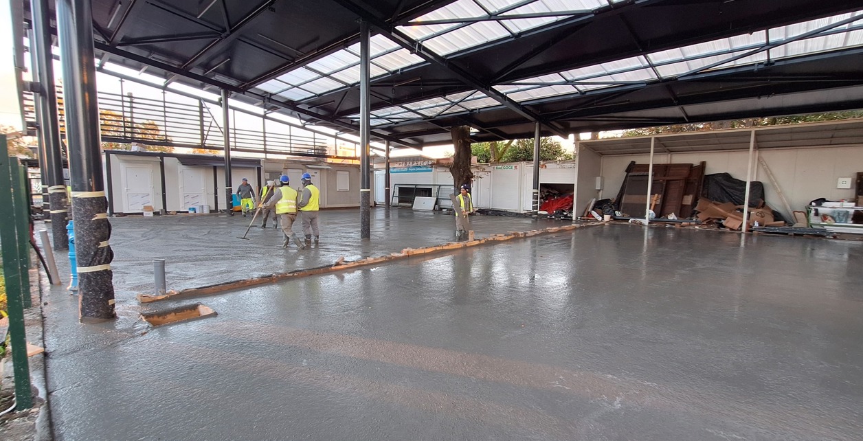 Gotovo je betoniranje platoa. Radnici su izlili 135m3 betona, a sada slijedi peglanje zaglađivanje i sušenje.